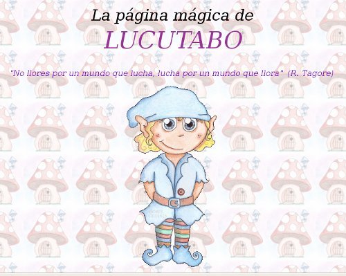Lucutabo es un simpático duende gracias al que vamos a recorrer una web de recursos para la Eduación Infantil, un lugar de encuentro entre educadores y padres en la que buscar y compartir recursos, ideas, opiniones... Todo con el fin de mejorar el proceso de enseñanza-aprendizaje entre los 0 y 6 años.