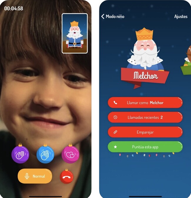 Ya te hablamos de esta app en su versión para Papá Noel. Imagínate la cara de sorpresa de tu hijo cuando los Reyes Magos le hagan una videollamada a tu móvil. Y además, se puede grabar.