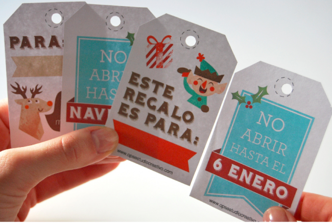 Descárgalas aquí haciendo click en el diseño que prefieras, imprímelas, recórtalas y pégalas en los regalos.