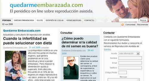 La página está dividida en cuatro secciones, incluída una dedicada a la maternidad "tardía" que resulta muy interesante en nuestra sociedad, cuando cada vez se retrasa más el momento de ser madre. Los apartados son "Quedar embarazada", "Ellos", sobre la fertilidad masculina, "Ser madre después de los 40" y "Noticias", donde las parejas con problemas de fertilidad pueden encontrar información actualizada sobre el tema.