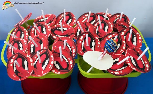 Hace unos meses publicó una entrada en la que resumía todo lo que habían preparado para el cuarto cumpleaños de su hijo Dani y una de las ideas que más simpáticas me parecieron fue la de imprimir unos labios relamiéndose para ponerlos a los Chupa Chups y ver luego la cara de los niños con esa gran boca roja mientras van deshaciendo los caramelos en su boca.