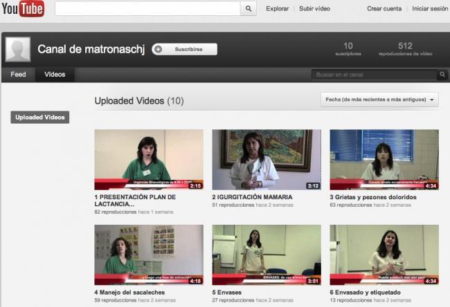 El canal Matronaschj de momento cuenta con 10 vídeos que tratan temas como la igurgitación mamaria, el manejo del sacaleches, al conservación de la leche materna... También hay temas centrados en el bebé, como la pérdida de peso del recién nacido o el sueño del bebé.