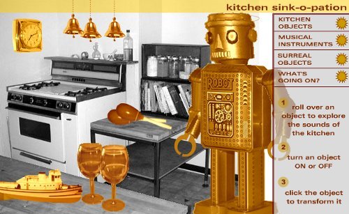 He encontrado esta web en la que los pequeños pueden hacer sus primeros pinitos componiendo sencillas y curiosas piezas musicales. En la página de Exploratorium encontramos una cocina con sorpresas. Podemos elegir tres tipos de objetos que llenan esa cocina: enseres títpicos de las cocinas, instrumentos musicales u objetos surrealistas que jamás encontraríamos en esa estancia de la casa...