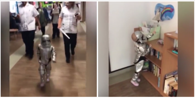 Tal ha sido el caso de Audrina, una pequeña británica que ha logrado vencer un agresivo neuroblastoma y lo ha celebrado con paso firme e imperial, disfrazada de soldado de Star Wars y haciendo sonar la campana que marca el final de su tratamiento.