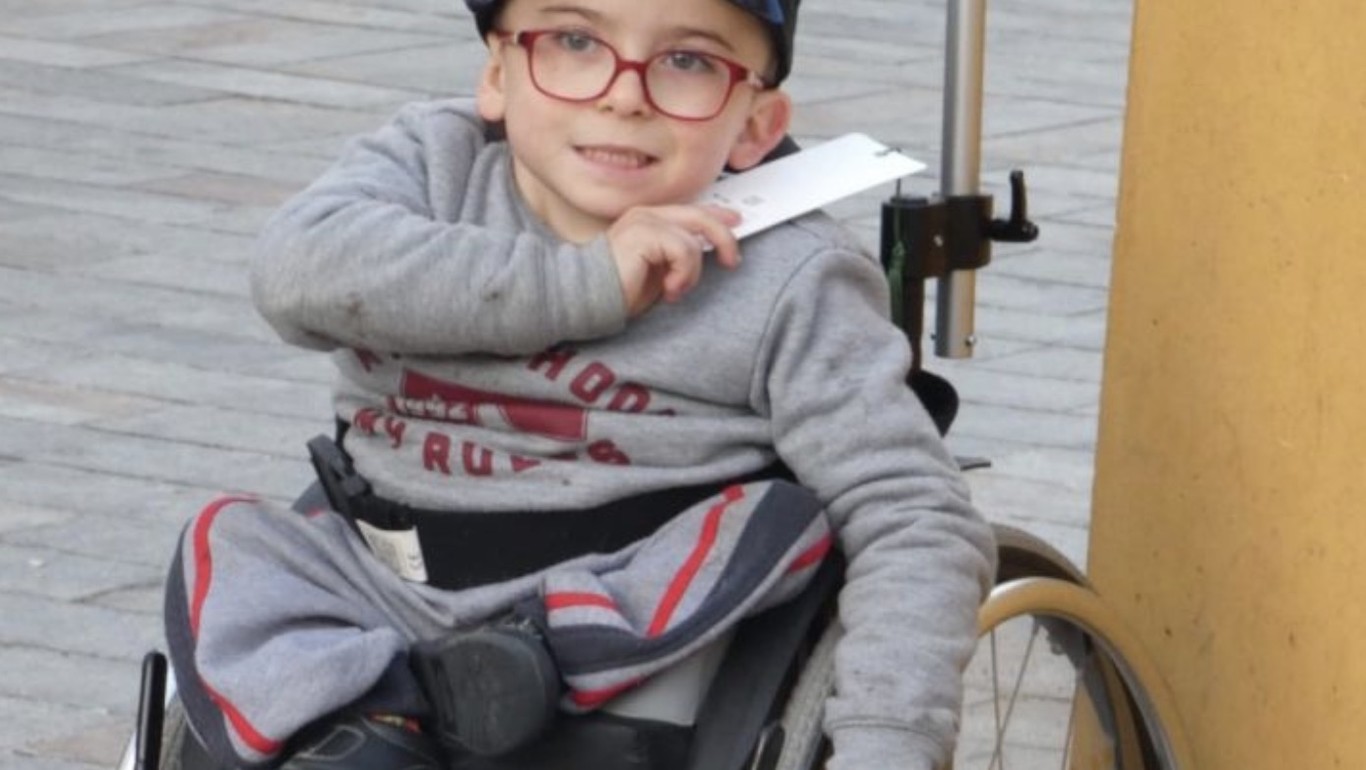 Iker tiene que ir siempre en silla de ruedas, porque le falta casi la mitad de la columna, no tiene sacro y sufre malformaciones en sus piernas a causa de su displasia caudal.
