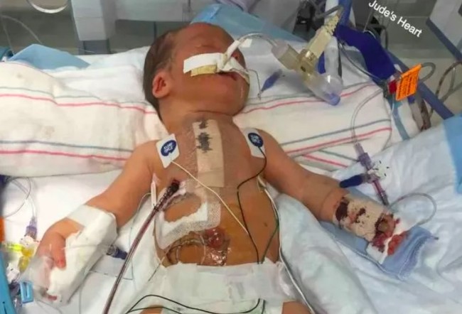 Su bebé ha tenido que ser operado a corazón abierto a los cuatro días de nacer (la foto que vemos arriba) y es probable que requiera más cirugías en el futuro. Debido a sus condiciones médicas, el sistema inmunológico de Jude no funciona correctamente, lo que significa no solo que es más susceptible a enfermarse, sino que cuando se enferma, incluso una infección leve como un resfriado común podría ser fatal.