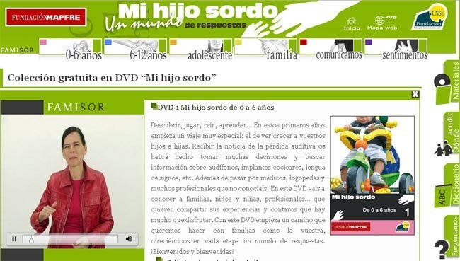 Abordan temas como cómo comunicarse con un niño sordo, la lengua de signos, cómo manejar la relación con otros familiares (hermanos, tíos, abuelos, etc) y cómo ayudarle en el desarrollo del lenguaje. Pero, sin duda la sección más interesante del portal es "Sentimientos". En ella se pone nombre al remolino de sentimientos que sobrevienen ante la noticia de saber que tu hijo es sordo: miedo, ansiedad, temor, culpa...