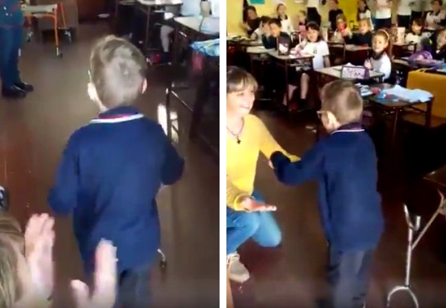 Nacho tiene ocho años y es de Bell Ville, Córdoba. Tiene parálisis cerebral, sus compañeritos de segundo grado lo alentaron a caminar y logró hacerlo. �� pic.twitter.com/YgphVCdPdB