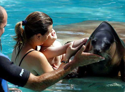 Se trata de una terapia pionera, desarrollada por la Fundación Río Safari y que utiliza los leones marinos para mejora la motricidad, equilibrio y la coordinación en los niños autistas o con deficiencias psíquicas.