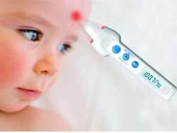 Hemos hablado de termómetros a distancia, y de otros que con apenas rozar la frente del bebé captan la temperatura, hoy conocemos uno nuevo llamado Thermofocus de la marca Kidz Med que funciona con infrarrojos midiendo la temperatura sin necesidad de tocar al bebé.