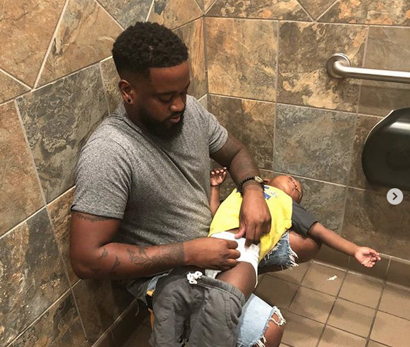 En más de una ocasión hemos dado voz a padres que han denunciado abiertamente las nefastas condiciones en las que han tenido que cambiar a sus hijos ante la ausencia de cambiadores en los aseos masculinos. Esta vez, la denuncia la hace un padre de Florida (Estados Unidos), que ha compartido unas fotografías en su cuenta de Instagram con las incómodas posturas que debe adoptar cada vez que tiene que cambiar el pañal a su pequeño fuera de casa.