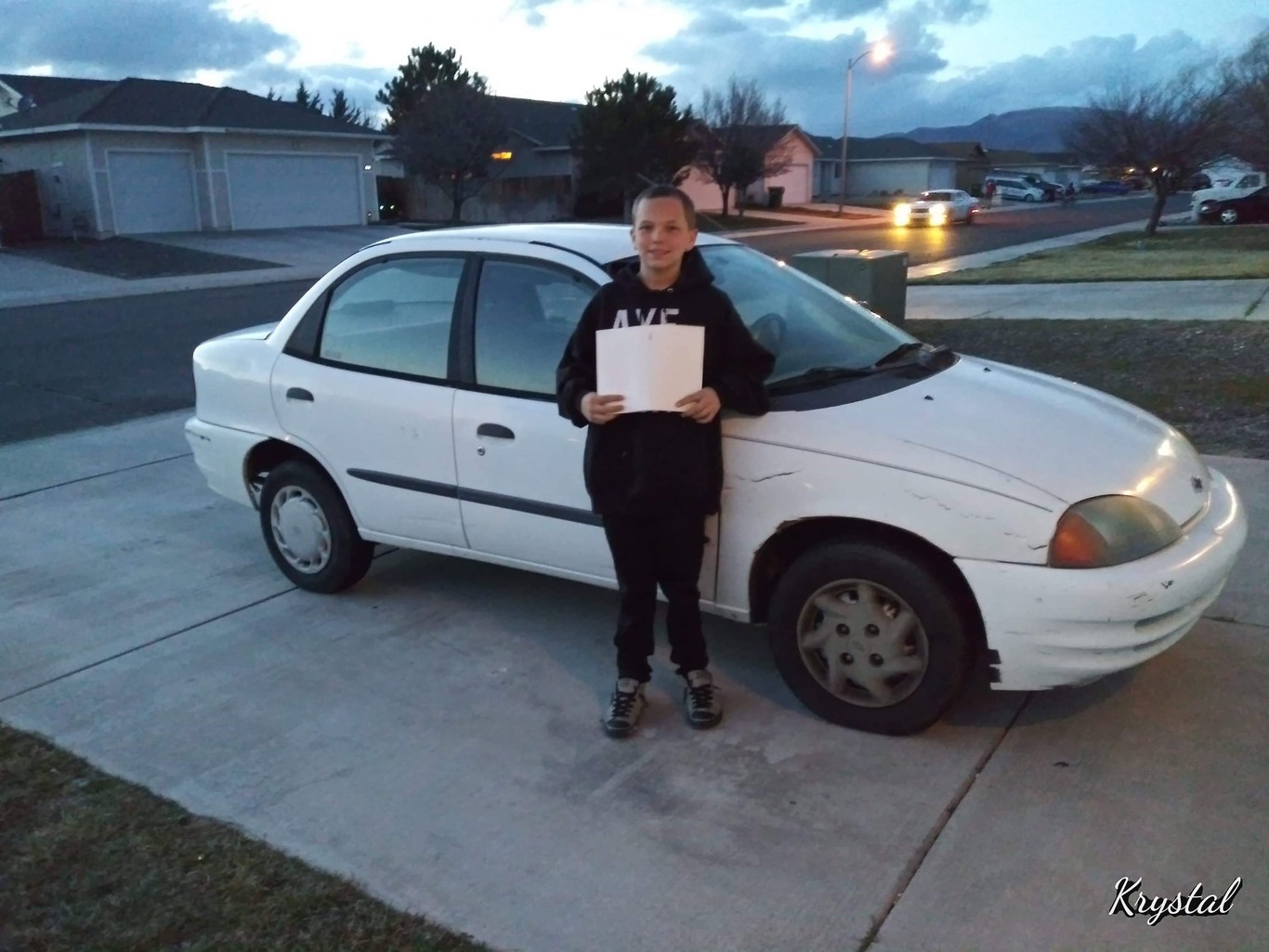 Krystal cuenta en Facebook que William se presentó en casa y la dijo: “mamá, te he comprado un coche”. Ella se rió a carcajadas, pero su hijo insistió en que saliera al jardín. Allí les esperaba una mujer con un coche, y les invitó a dar una vuelta. Explica que se subieron, pero aún entonces no pensaba que fuera de verdad.
