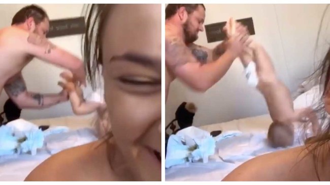 Publicado en su cuenta de Facebook, el vídeo muestra a Mikayla en primer plano, mientras vemos a su esposo Phil en una tarea diaria que realizamos todos los padres: a punto de cambiar el pañal de bebé. En este caso, se trata de Axel, un bebé que definitivamente se divierte mucho durante este proceso.