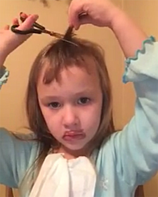 Esto es lo que debió suceder con la niña de este vídeo, que decidió ponerse delante de la cámara, incluso con todos los morros manchados aún de comida, para hacer un vídeotutorial sobre cómo cortarse el pelo con las tijeras.