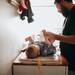 "4. Un atuendo de respaldo para el bebé es ideal, pero un atuendo de respaldo para ti es aún más importante. Te vomitarán y se reirán. Sí, el color negro es el color de la caca, pero las manchas de vómito se ven peor en él."