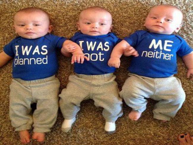 He querido ilustrar el post con la simpática foto de los trillizos que veis arriba que me ha parecido graciosísima. Ese sí que es un embarazo con sorpresa, ¡buscando uno vinieron tres! El primer bebé lleva una camiseta que pone “Yo he sido planeado”, el segundo “Yo no” y el tercero “Yo tampoco”.