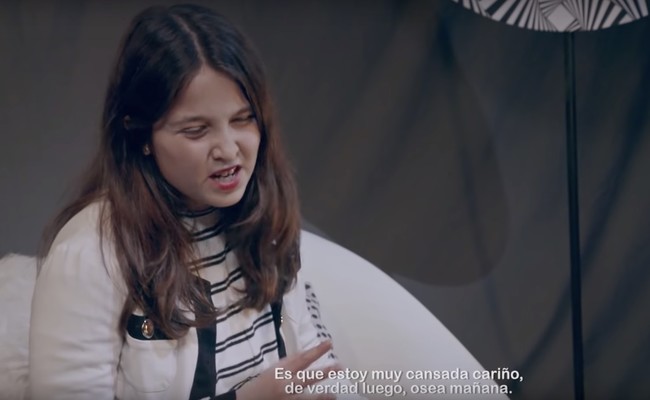 La ONG invitó a unos niños a disfrazarse de sus padres y a actuar como si fueran ellos, repitiendo lo que a diario escuchan en sus casas y grabó sus reacciones y las de sus padres. En su puesta en escena podemos escuchar frases tan reveladoras como "Estoy muy cansada cariño. Te prometo, te prometo que mañana lo hacemos". Y es que así es como nuestros hijos nos ven cuando volvemos a casa de trabajar: estresados y cansados.