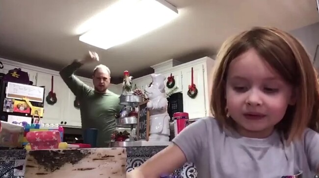 Y justo esto, fue lo que pensó su padre que hacía. Al ver que la pequeña ponía música mientras jugaba con pegatina de colores en una hoja, el padre asumió que Delaney estaba haciendo uno de esos tutoriales privados, por lo que decidió divertirse un rato y ponerse a bailar y cantar con muchísimo entusiasmo.