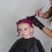 Una niña de 2 años con el pelo rosa