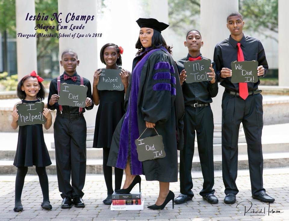 Ieshia Champs llevaba queriendo ser abogada desde que tenía siete años, pero su infancia y adolescencia no fueron fáciles, y todo apuntaba a que jamás lo lograría. Su historia es dura. Mucho. Pero también es una historia cargada de esfuerzo personal, y apoyo incondicional de unos hijos hacia su madre.