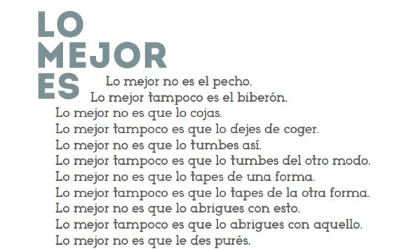 Con la intención de acabar un poco con todo el tema de los consejos contradictorios y para dar fuerza y valor a las madres, una pediatra colgó un escrito en un tablón que empieza diciendo "Lo mejor no es el pecho; Lo mejor tampoco es el biberón", una madre le hizo una foto y el escrito está haciéndose famoso en las redes.