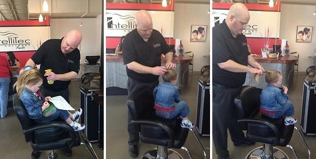 Menos mal que existen padres mucho más preocupados y dispuestos a solucionar ese problema con el estilismo que muchos llevamos de fábrica, como nuestro padre del artículo, el cuál al verse ante la petición de su hija porque variara un poco el modelo de peinados que le hacía decidió apuntarse a una escuela de peluquería. A los pocos días los resultados fueron más que decentes.