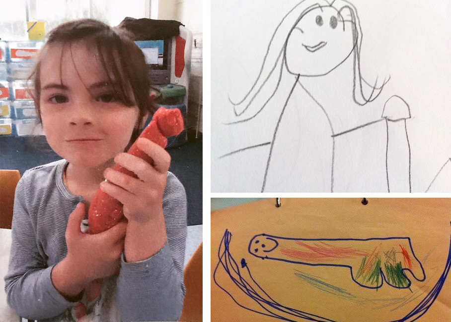 Es lo que tiene la inocencia de los niños, que ellos no saben de formas sexuales, de tener cuidado al crear para que sus manualidades no parezcan otra cosa, y un buen día te llegan a casa con un dibujo o un trabajo en barro que parece un pene, una vulva o dos animales copulando.