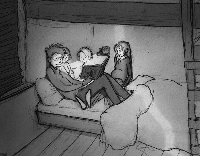 Las ilustraciones de Curtis capturan momentos cotidianos de su historia como padre, desde los embarazos, las pérdidas que han tenido en el camino, así como la crianza de sus hijos y la relación como pareja que para ambos sigue siendo prioridad incluso tras la llegada de sus hijos.
