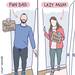 Otro ejemplo de la doble moral que señala en sus ilustraciones, es cuando las personas dicen a los padres que "están de niñera" cuando están a cargo de sus hijos, algo que incluso los mismos padres han comentado les resulta molesto.