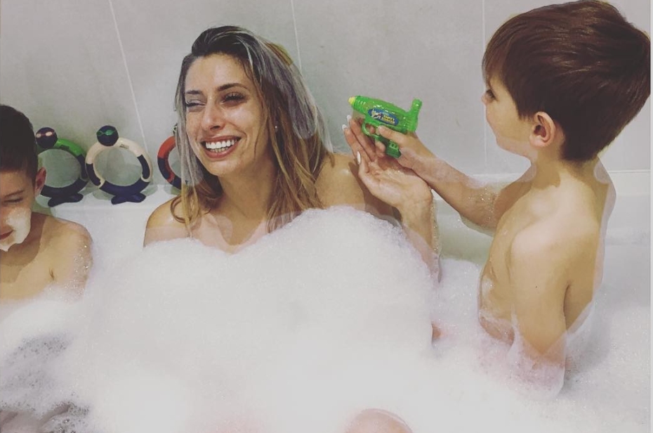 La presentadora británica Stacey Solomon compartió hace unos meses (el Día de la Madre) una foto bañándose junto a sus dos hijos de nueve y cinco años en su cuenta de Instagram.