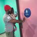 Procuro ser lo más respetuoso posible con las mujeres mientras lo hago, lo que significa que toco la puerta antes de entrar y anuncio que estoy ahí. Me aseguro de que si hay personas adentro, sepan que soy un papá que viene con su hija y de que se sientan cómodas con eso.
